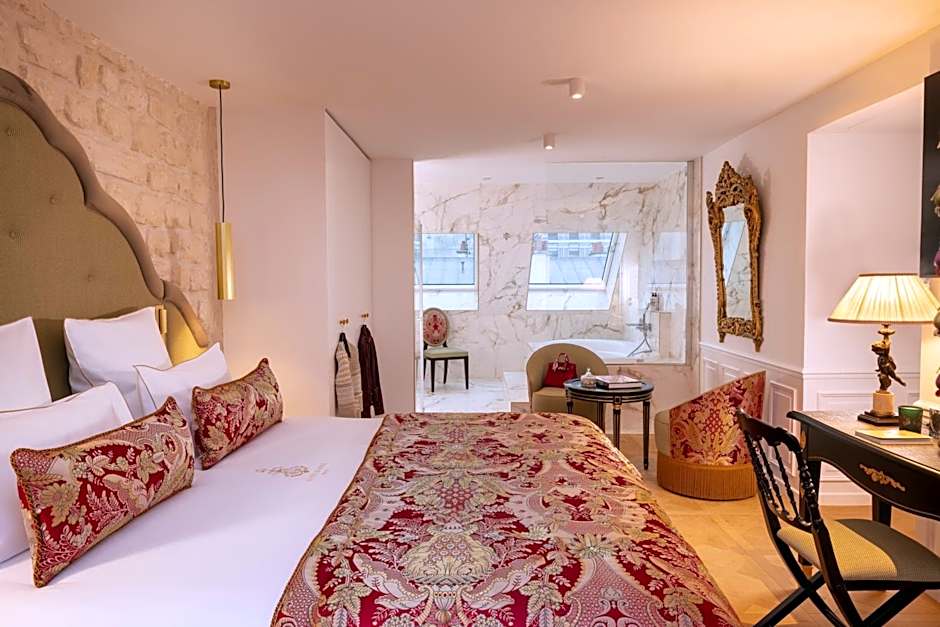 Guests will have a special experience as the suite offers a hot tub. This suite consists of 1 living room, 1 separate bedroom and 1 bathroom with a walk-in shower and free toiletries. The air-conditioned suite provides a flat-screen TV with satellite channels, soundproof walls, a mini-bar, a tea and coffee maker as well as an inner courtyard view. The unit offers 2 beds.